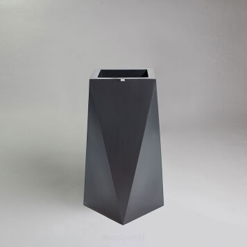 Duża donica o oryginalnym, geometrycznym kształcie. Jej ostre krawędzie sprawią, że charakter wystroju nabierze gustownej i nowoczesnej formy. Marka Decolovin proponuje antracytowe donice Nevis o wysokości 75 cm wykonane z najwyższej jakości materiałów, gwarantujących ich trwałość i wytrzymałość. Produkt ten znajdzie zastosowanie nie tylko jako tradycyjna donica, ale także unikatowy, awangardowy element dekoracyjny zarówno wnętrz, jak i przestrzeni zielonych.