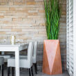 Duża donica o oryginalnym, geometrycznym kształcie. Jej ostre krawędzie sprawią, że charakter wystroju nabierze gustownej i nowoczesnej formy. Marka Decolovin proponuje donice Nevis w kolorze imitującym terakotę o wysokości 90 cm wykonane z najwyższej jakości materiałów, gwarantujących ich trwałość i wytrzymałość. Produkt ten znajdzie zastosowanie nie tylko jako tradycyjna donica, ale także unikatowy, awangardowy element dekoracyjny zarówno wnętrz, jak i przestrzeni zielonych.