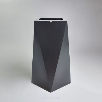 Duża donica o oryginalnym, geometrycznym kształcie. Jej ostre krawędzie sprawią, że charakter wystroju nabierze gustownej i nowoczesnej formy. Marka Decolovin proponuje antracytowe donice Nevis o wysokości 90 cm wykonane z najwyższej jakości materiałów, gwarantujących ich trwałość i wytrzymałość. Produkt ten znajdzie zastosowanie nie tylko jako tradycyjna donica, ale także unikatowy, awangardowy element dekoracyjny zarówno wnętrz, jak i przestrzeni zielonych.