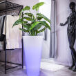 Donice świecące Della w wariancie LED RGB dzięki podświetleniu dostępnym w 16 odcieniach dają możliwość tworzenia wyjątkowych aranżacji, które zachwycać będą nie tylko za dnia, ale i w nocy. Szeroka paleta kolorów światła sprawia, że produkt ten znajdzie zastosowanie zarówno jako tradycyjna donica, jak i oryginalna designerska lampa o wysokości 90 cm, której barwę i intensywność podświetlenia dobieramy indywidualnie za pomocą pilota.