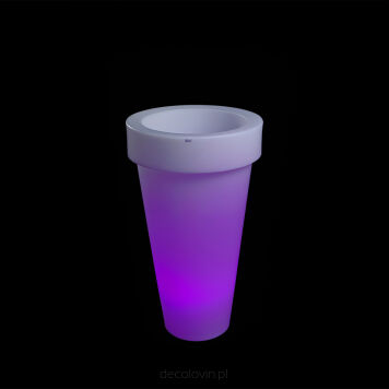 Donice świecące Pons w wariancie LED RGB fantastycznie sprawdzą się jako oryginalne lampy w salonie lub delikatne, nowoczesne oświetlenie przestrzeni biurowej. Szeroka gama 16 kolorów podświetlenia zmienianych za pomocą bezprzewodowego pilota daje nieskończenie wiele możliwości aranżacji, a subtelna iluminacja donicy wprowadzi w każdym miejscu wyjątkowy, magiczny nastrój. Nowoczesna forma o wysokości 75 cm jest doskonałym rozwiązaniem dla osób poszukujących niebanalnych elementów dekoracyjnych.