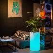 Donice świecące Tilla w wariancie LED RGB wyposażono w 16 kolorowy moduł podświetlany gwarantujący oryginalność niezależnie od aranżacji. Prosty, ponadczasowy kształt i wysokość 90 cm podkreśli walory roślin, zarówno tych niewielkich, jak i większych drzewek lub krzewów. Wyjątkowa odporność oraz wykorzystanie materiałów najwyższej jakości sprawia, że można jej z powodzeniem używać, także na zewnątrz. Barwę i intensywność podświetlenia dobieramy indywidualnie za pomocą pilota znajdującego się w zestawie.