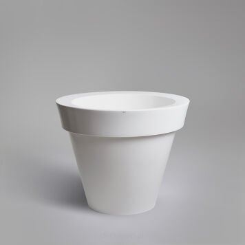 Klasyczne, proste, duże donice Grande w kolorze białym znakomicie dopełnią każdą rozległą przestrzeń. Gustowne i funkcjonalne pojemniki na rośliny o wysokości 75 centymetrów i 88 cm średnicy poprzez minimalistyczny design nadadzą elegancji otoczeniu. Okazałe gabaryty sprawią, że doskonale sprawdzą się jako donice ogrodowe, na taras lub ozdoby obiektów usługowo-handlowych. Dzięki swoim atutom z powodzeniem znajdą zastosowanie jako donice miejskie lub parkowe. Grande fantastycznie podkreślą urok umieszczonej w nich roślinności.