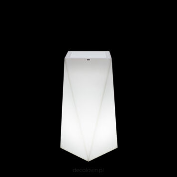 Geometryczna forma donic podświetlanych Nevis w kolorze mlecznej bieli fantastycznie kontrastuje z naturalnym pięknem roślin, dlatego też ten niebanalny produkt jest szczególnie polecany jako element ozdobny wnętrz, tarasów i ogrodów. Subtelne podświetlenie o zimnej barwie umożliwia dodatkowe wyeksponowanie szlachetności zieleni. Wysoka donica o wysokości 75 cm doskonale sprawdzi się jako wyrafinowana, a jednocześnie niecodzienna lampa.